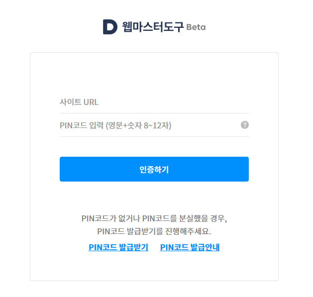 다음에서 소유권 확인을 하기 위해서는 웹마스터도구에 접속하여 아래 PIN코드 발급받기 버튼을 누른다.