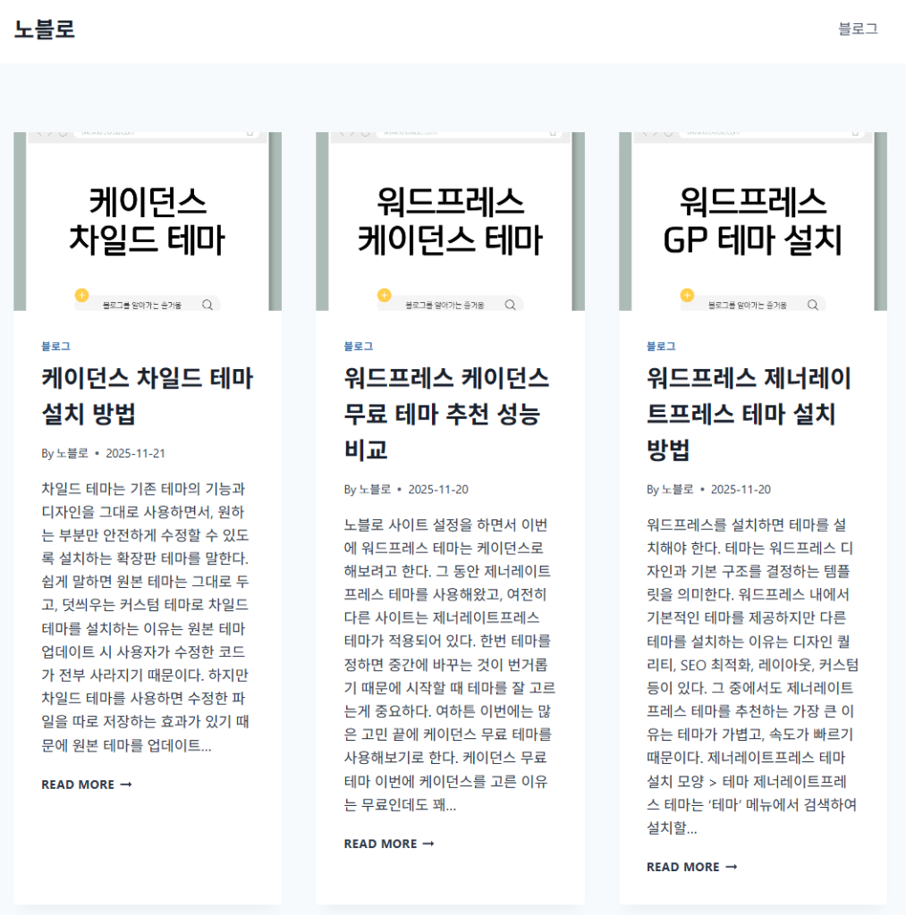 현재 사용중인 케이던스 테마는 썸네일을 넣으면 아래와 같이 보인다.