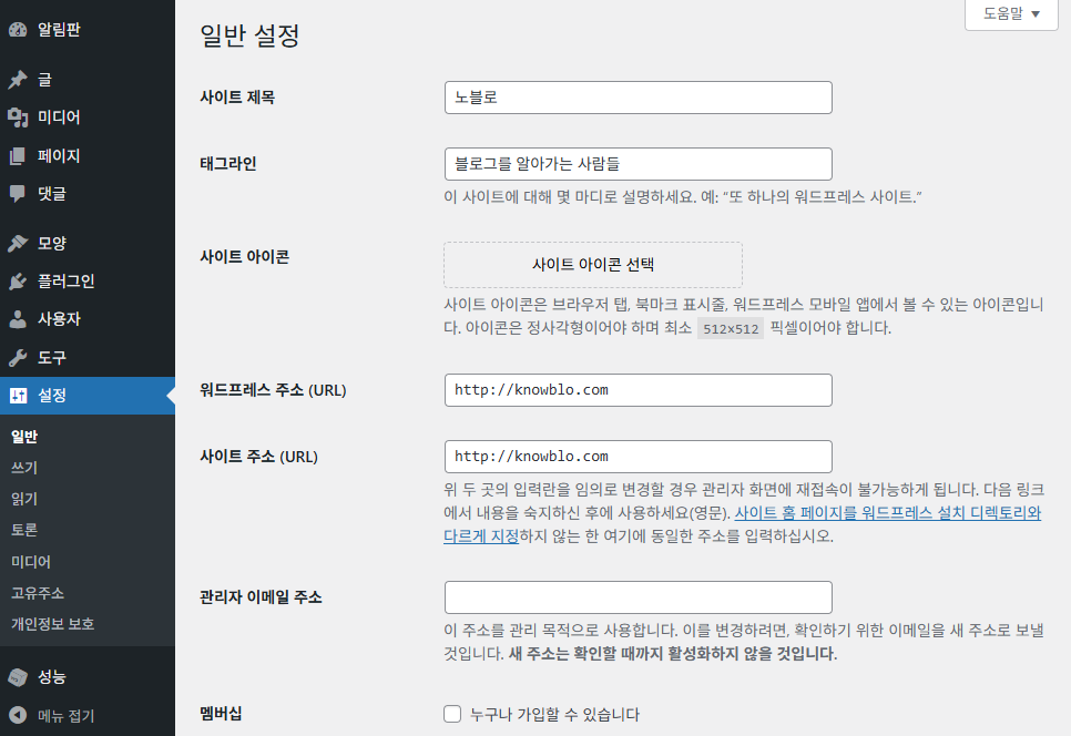 일반 설정에는 정답이 없다. 다만 사이트 제목과 태그라인은 블로그를 운영하려는 방향에 맞게 입력해주는 것이 나중에 검색 노출에 유리하다.